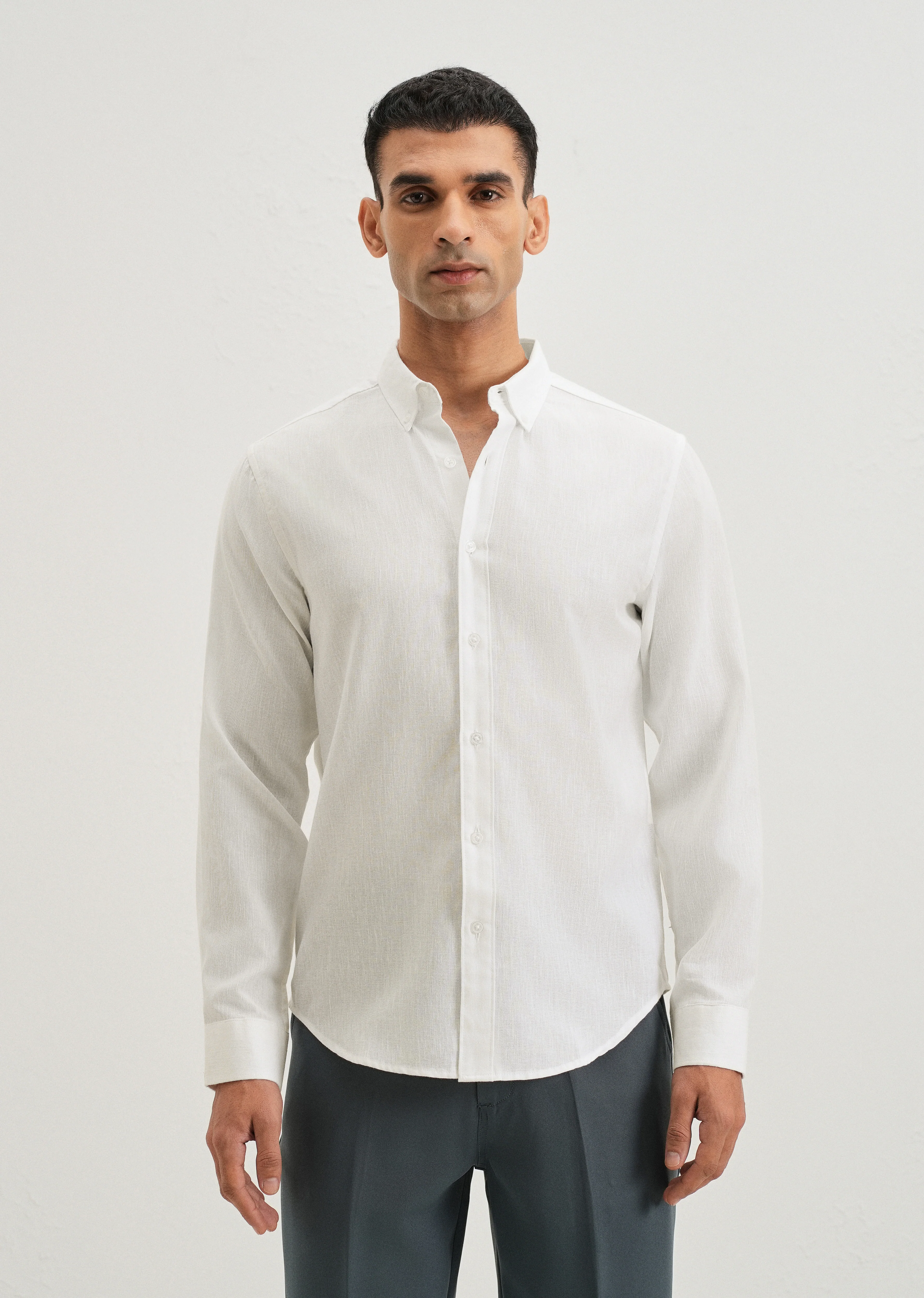Misty White Blended Linen shirt