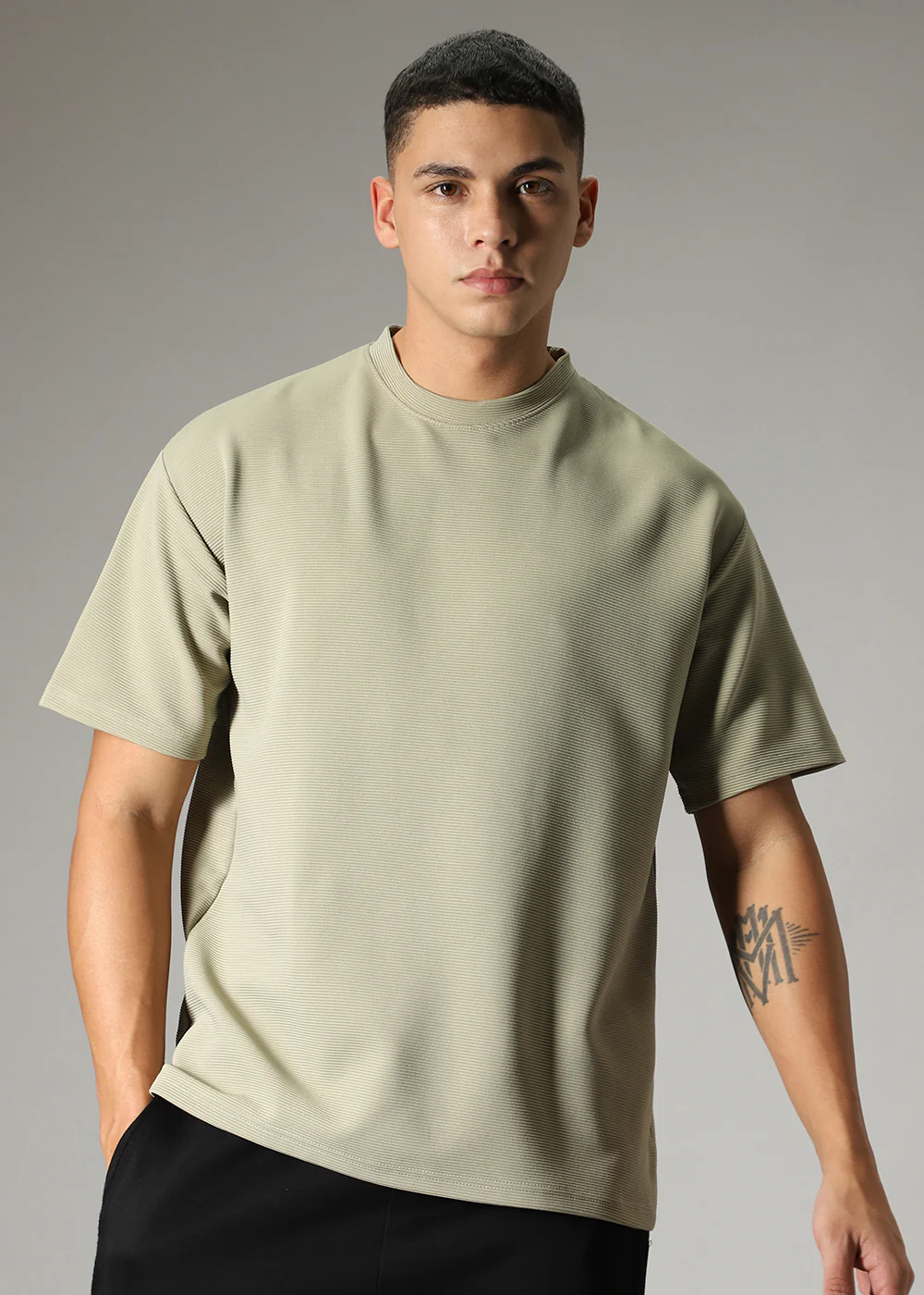 Oversized Pastel Green Plain Textured T-shirt