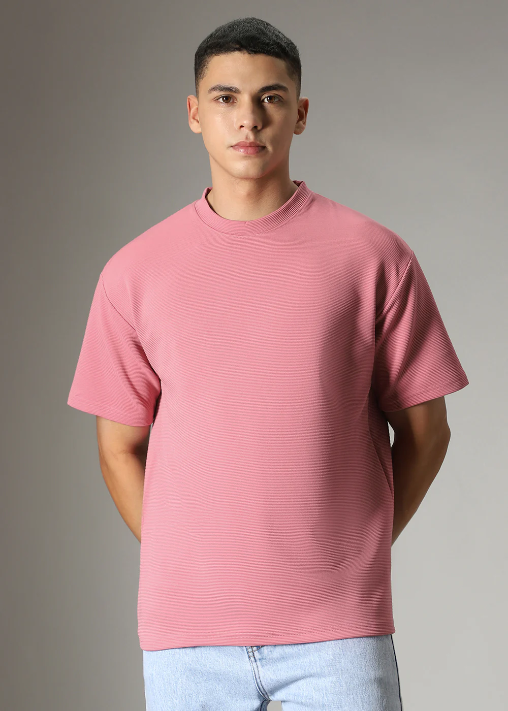 Oversized Pink Plain Textured T-shirt